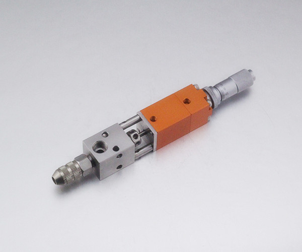產品說明:復動氣缸,千分尺可調節膠量大小,中間隔開方式,防止膠水往氣缸上跑,適合中低粘度膠水及液體,可接各式點膠針頭