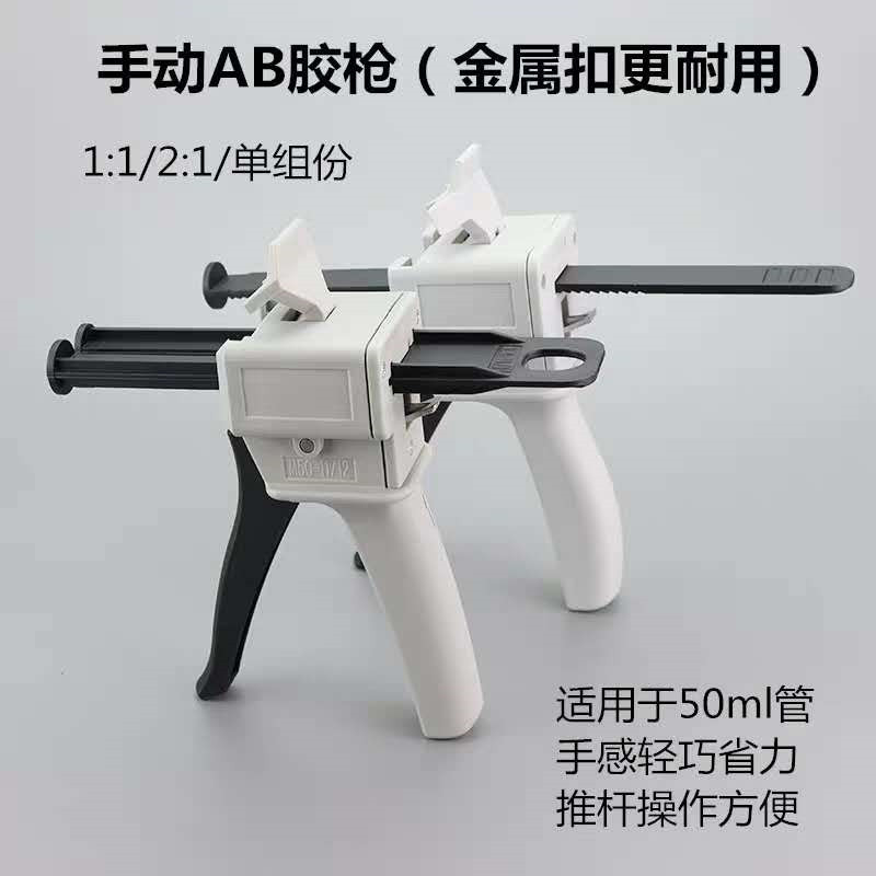 (1)1:1和2:1通用型50ml手動AB膠槍操作簡單,方便耐用。